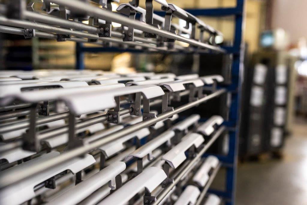 Mit der Verwendung innovativer Filter- und Gestelltechnik können wir kurze Rüstzeiten und damit wirtschaftliche Prozesse bei der Industrielackierung gewährleisten und sind in der Lage, Stückzahlen jeder Größenordnung und Teile mit verschiedensten Geometrien effizient zu lackieren. Durch die Optimierung des Materialflusses sind im Bereich der Roboterlackierung sowohl einschichtige Lacksysteme als auch ein Mehrschichtaufbau problemlos realisierbar.